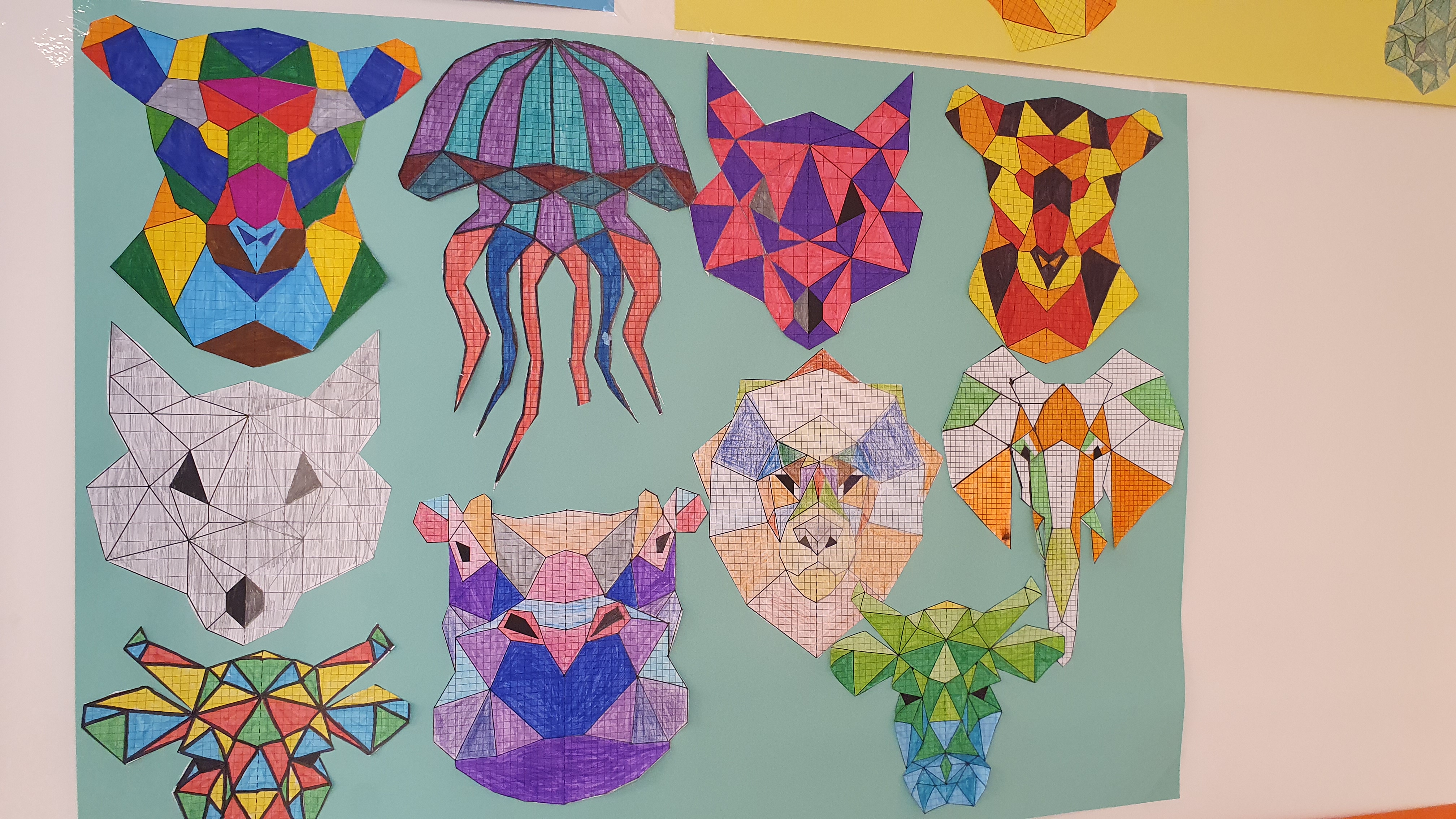 Les élèves de 6ème B et du groupe 6ème Euclide ont appliqué les méthodes de construction du symétrique d’un point par rapport à une droite pour compléter les animaux. Le coloriage devait respecter les règles de la symétrie axiale.