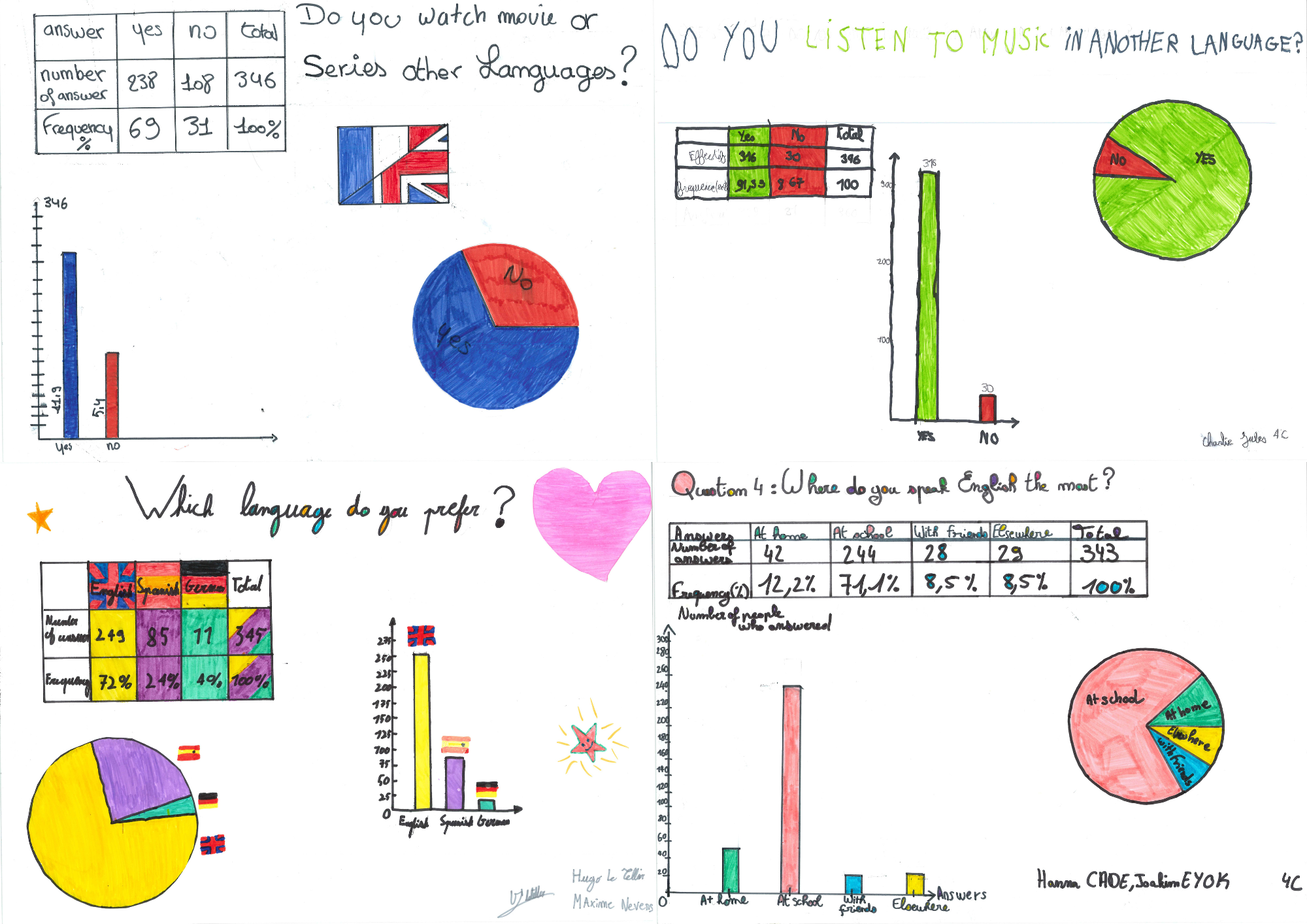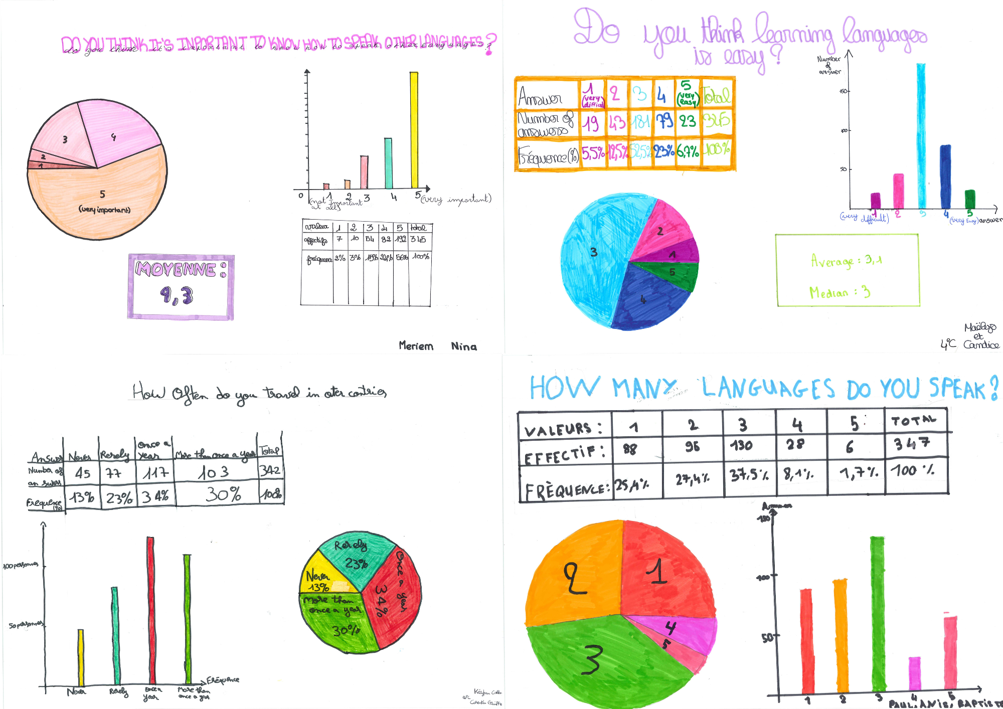 Les élèves de 4°C ont allié mathématiques et anglais pour réaliser un affichage statistique à l’occasion de la Semaine des langues.